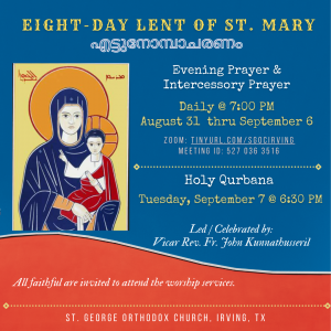 Holy Qurbana – 8-Day Lent of St. Mary – Rev. Fr. John Kunnathusseril – Sep 7th ’21